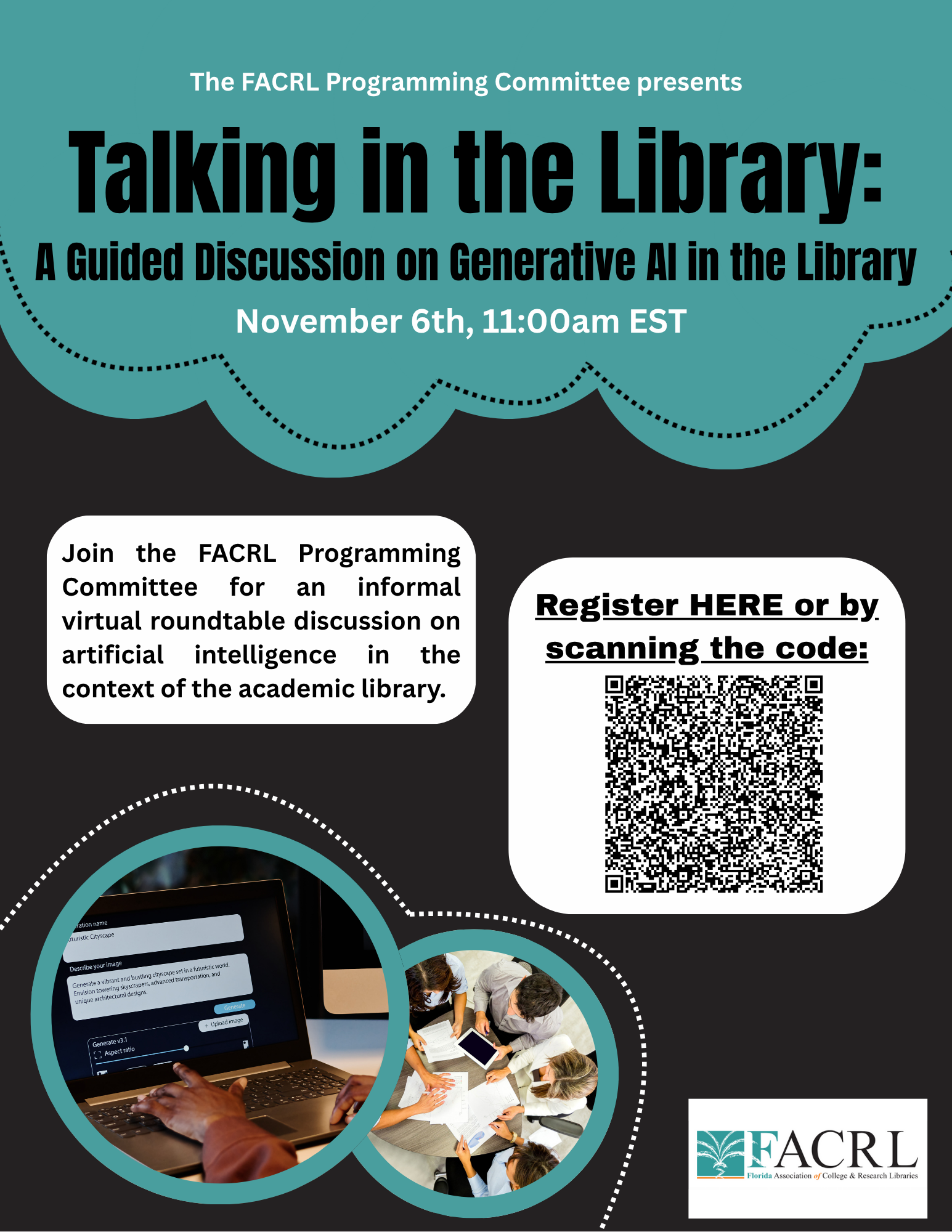[Fla-facrl] November 6 webinar - Talking in the Library: A Guided Discussion on Generative AI in the Library