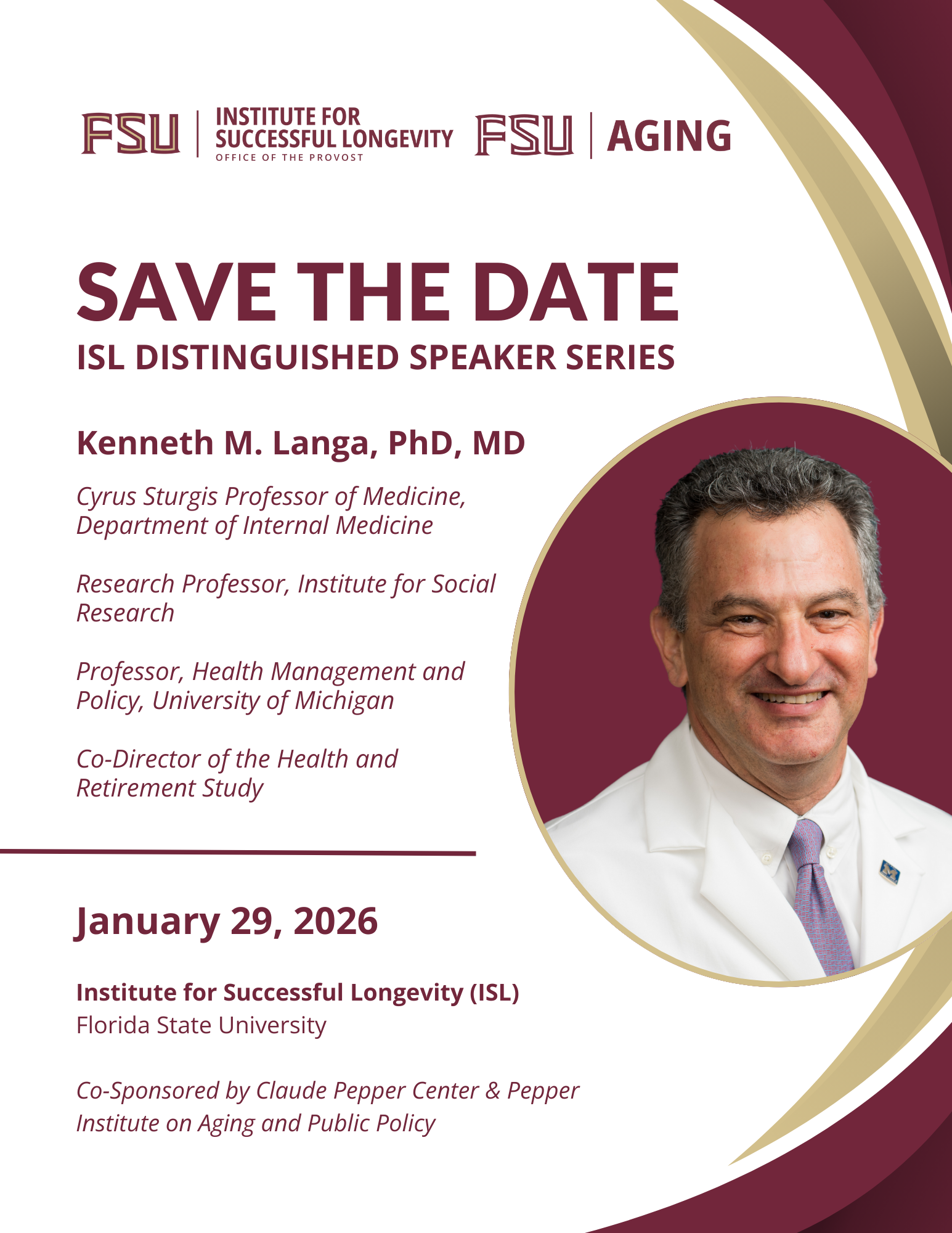 We are delighted to bring Dr. Langa to FSU, and we encourage you to mark your calendars for this exciting opportunity to engage with one of the world’s foremost experts in cognitive aging. Full agenda and RSVP information will follow soon.